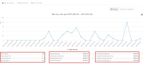 - Báo cáo chi tiết cuộc gọi tổng cuộc gọi, gọi đi, gọi đến.
