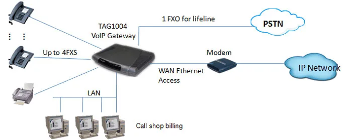 Voip gateway chuyển đổi tín hiệu từ tổng đài analog truyền thống sang giao thức kiểu IP. Cho phép doanh nghiệp gia tăng số lượng người sử dụng thông qua phần mềm Softphone, thiết bị IP phone,….. Giải pháp Voip kết hợp thiết bị này giúp giảm chi phí đường dây, kết nối nhiều chi nhánh của tổng đài chỉ qua mạng Internet, LAN/WAN nội mạng.